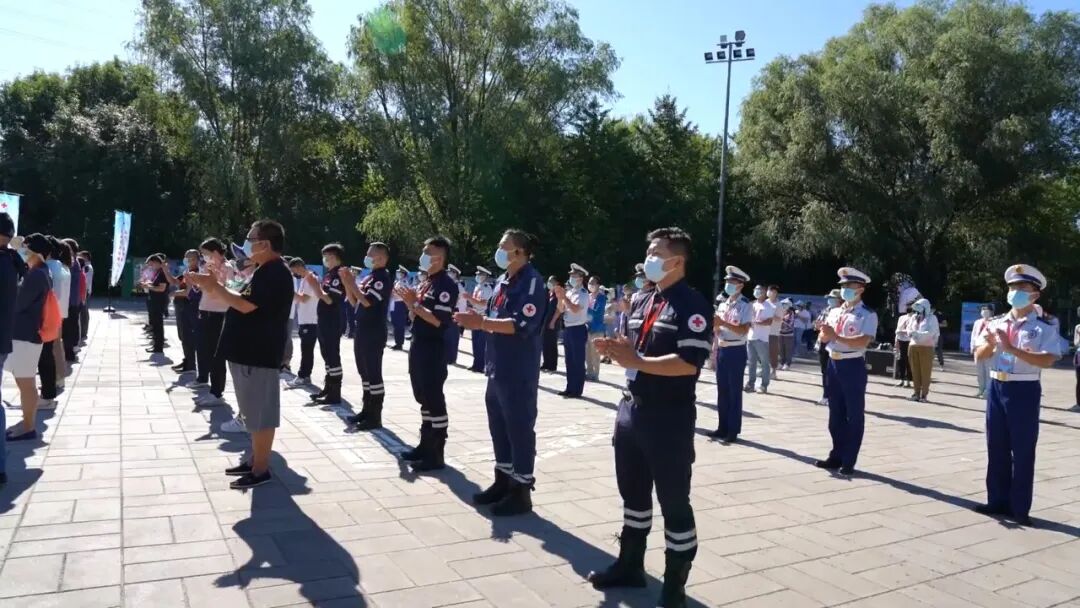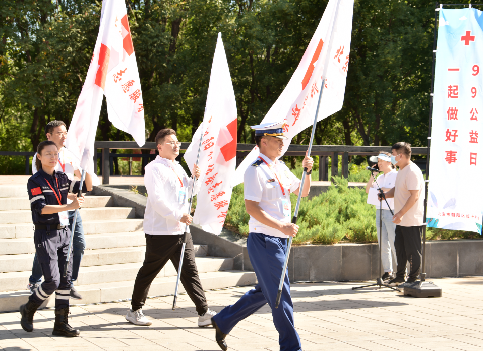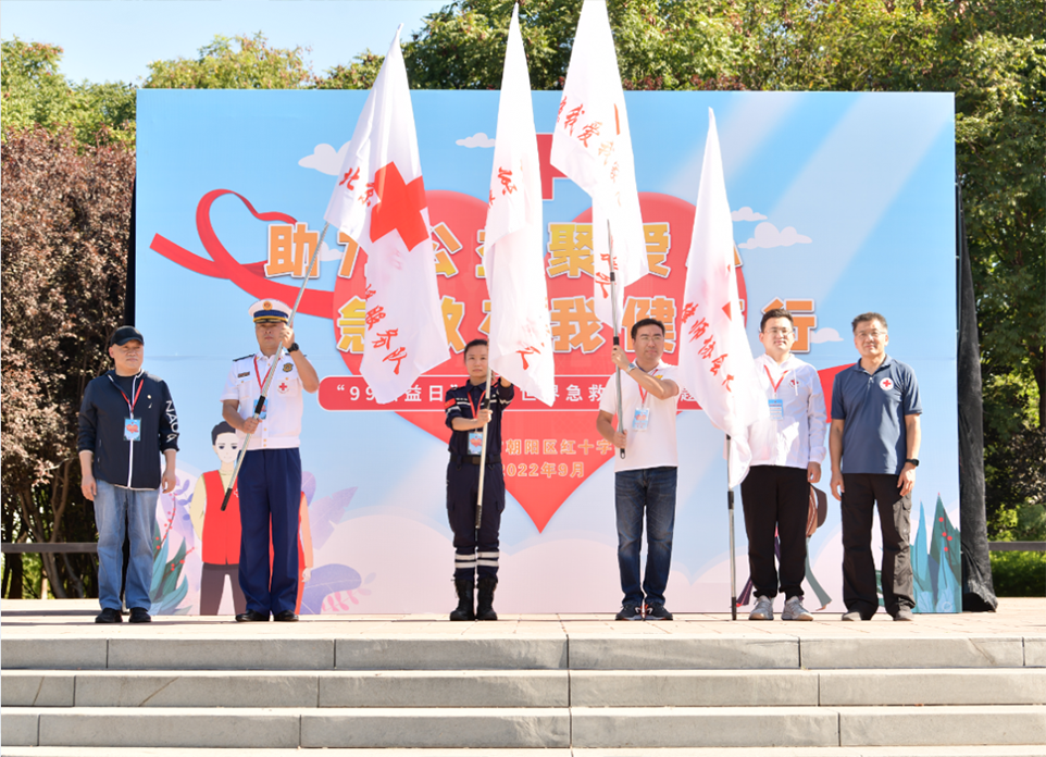 此次活动,区红十字会为北京朝阳韧先锋救援队、北京朝阳消防救援服务队、我爱我家志愿服务队、北京朝阳律师协会志愿服务队分别授予了红十字志愿(救援)服务队队旗。